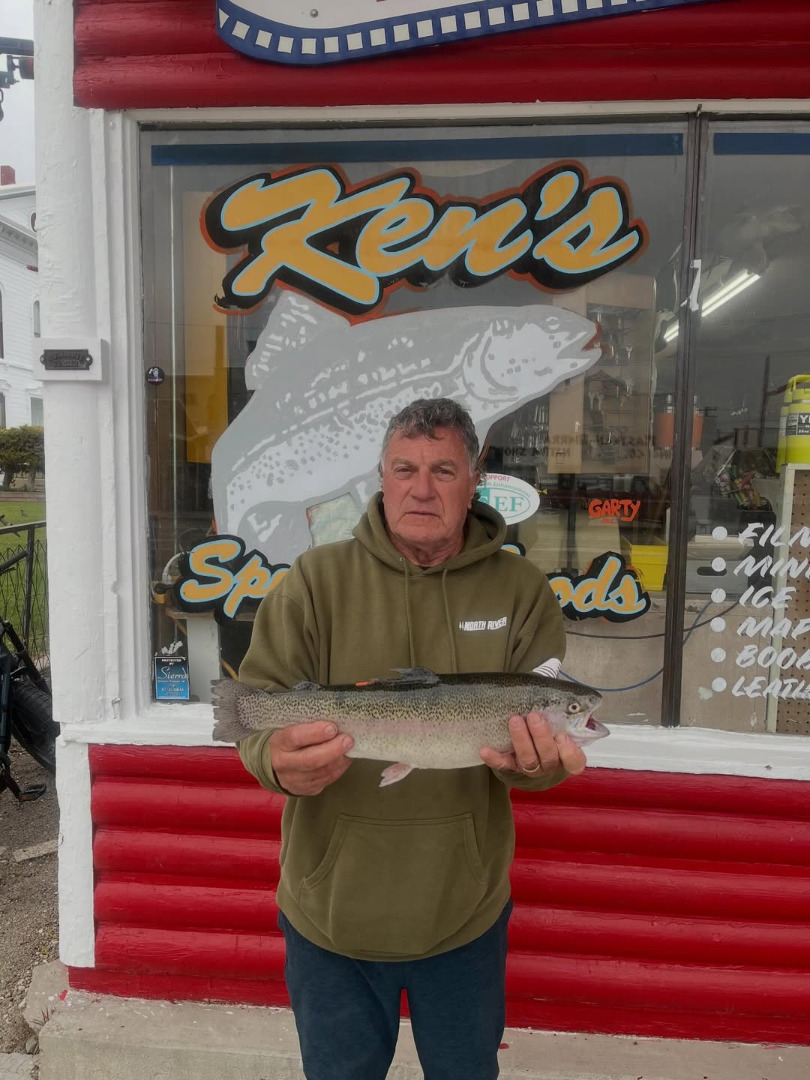 Lorenzo with a 4lb 9oz BFEF tagged rainbow from Bridgeport Reservoir on a crawler #kensport #bragginbox